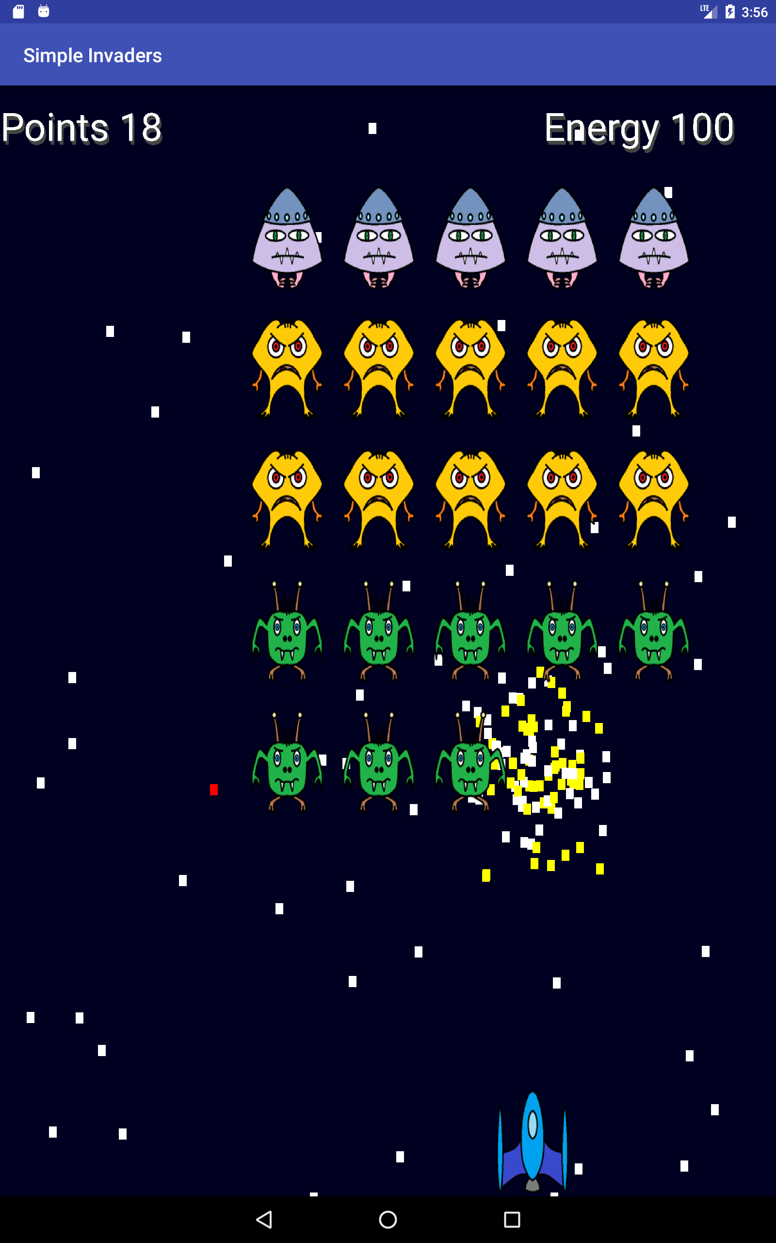 You are our hero and you will fight with your spaceship against the evil invaders. Fire with your lasergun to clear the enemy lines.